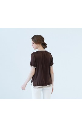 闕蘭絹前短後長下擺釘釦造型素面蠶絲緞面上衣 - 咖色 - 6650