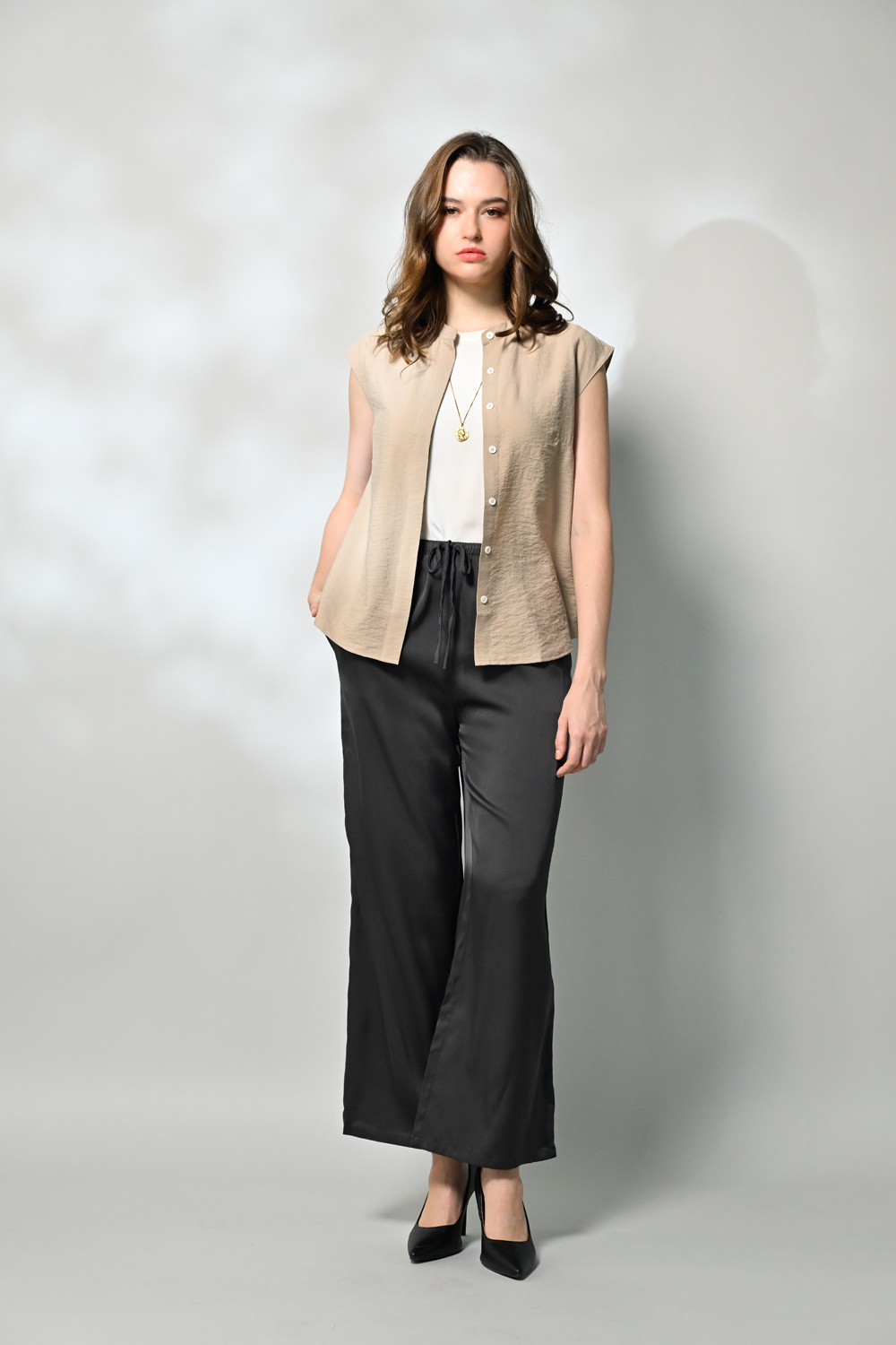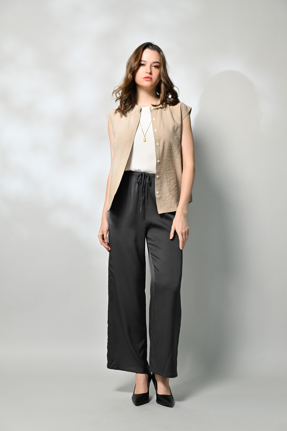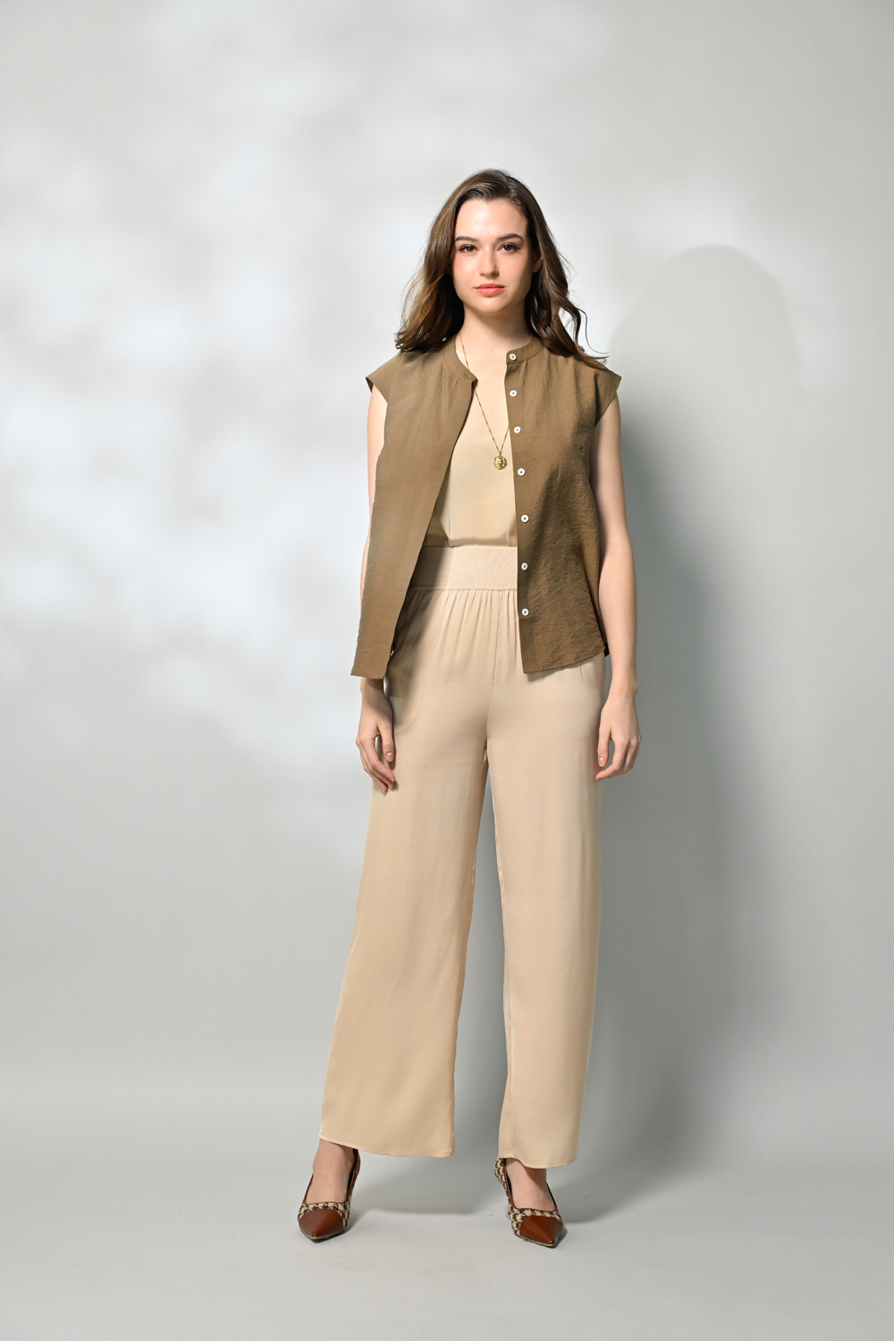 御絹坊質感舒適休閒立領排扣蠶絲無袖上衣-6762(咖啡色)