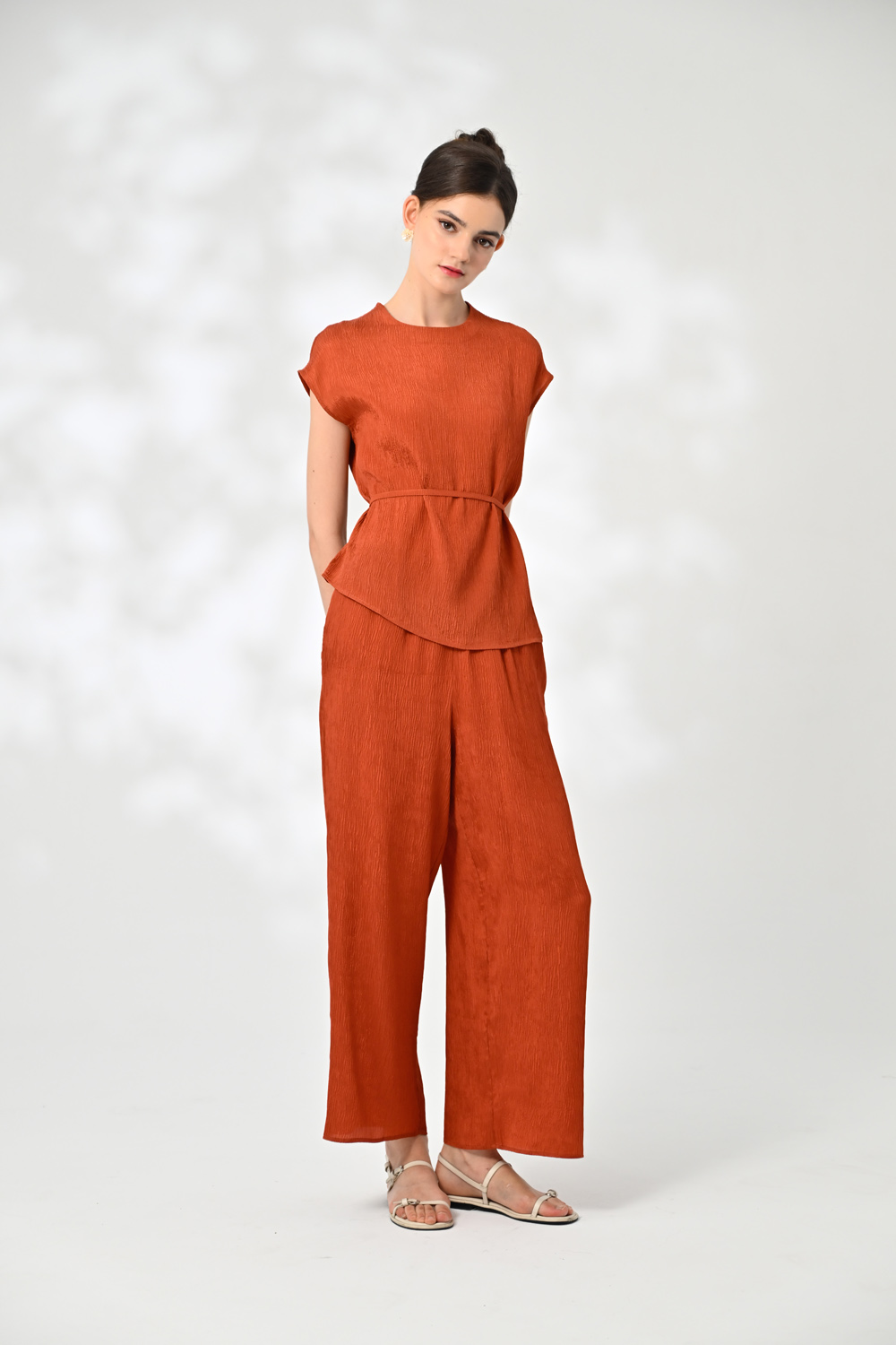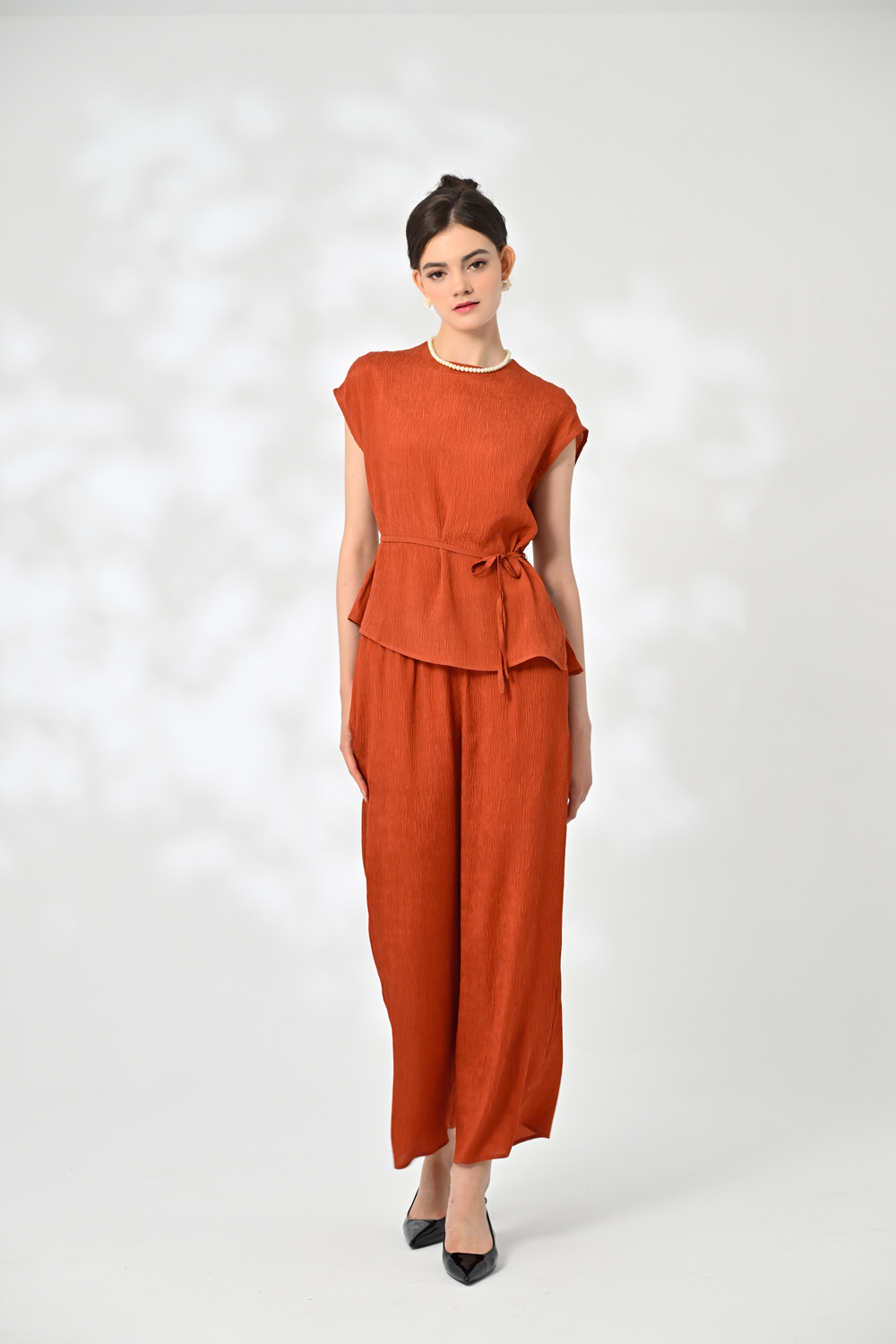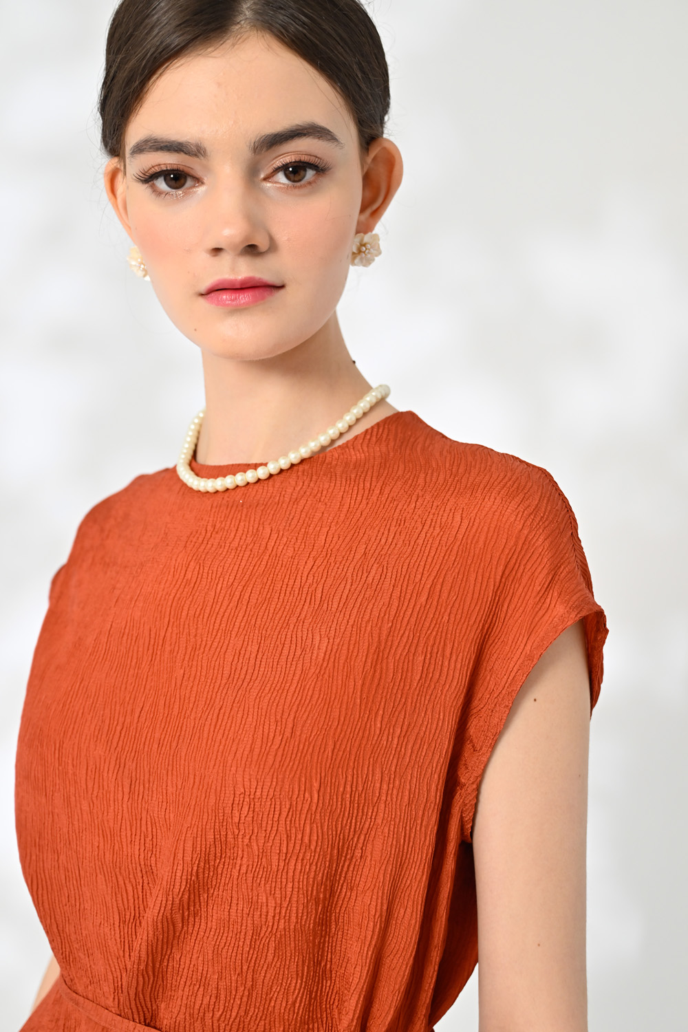 御絹坊質感尊榮褶縐蠶絲綁帶上衣-6761(紅柿色)