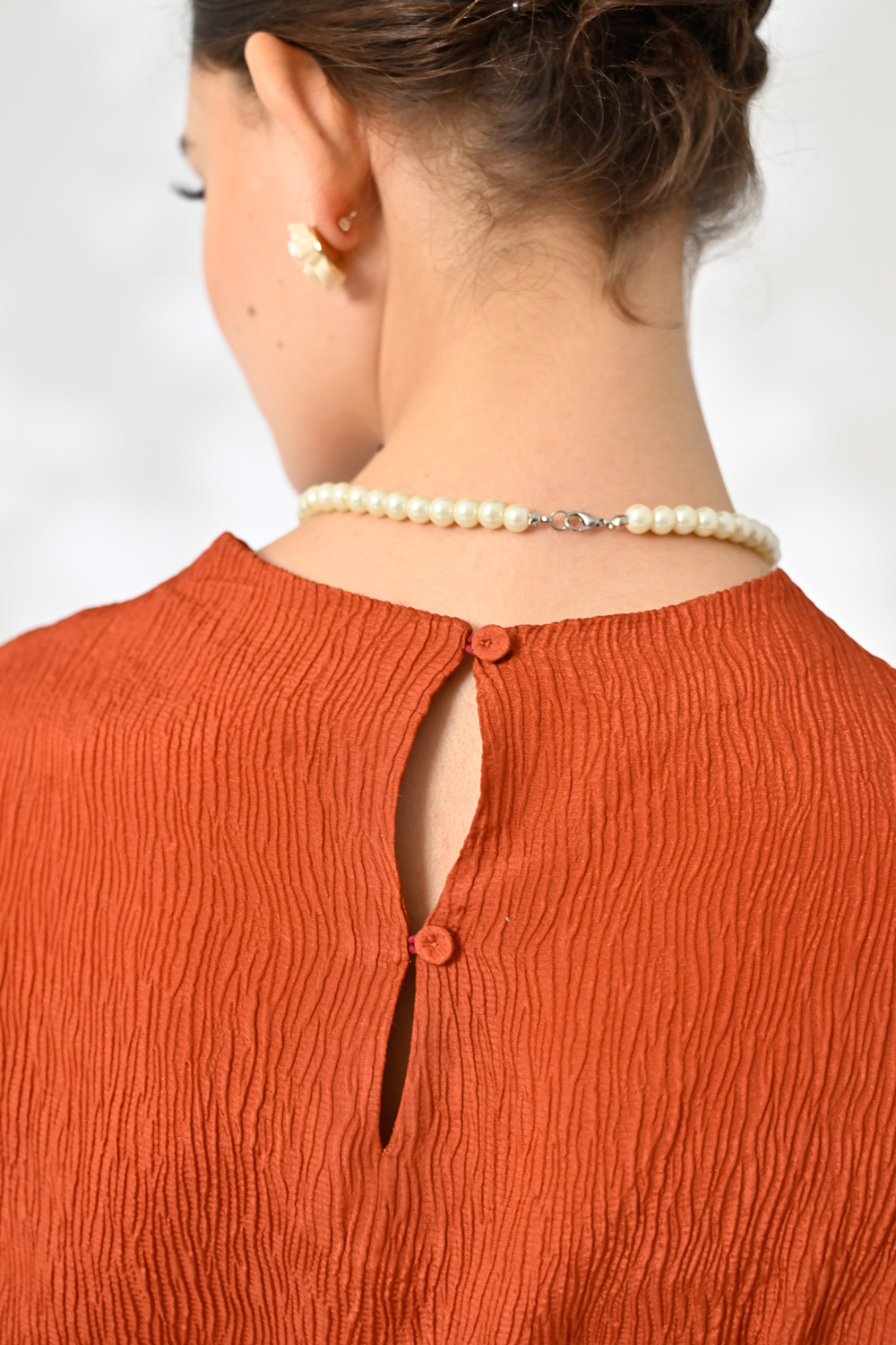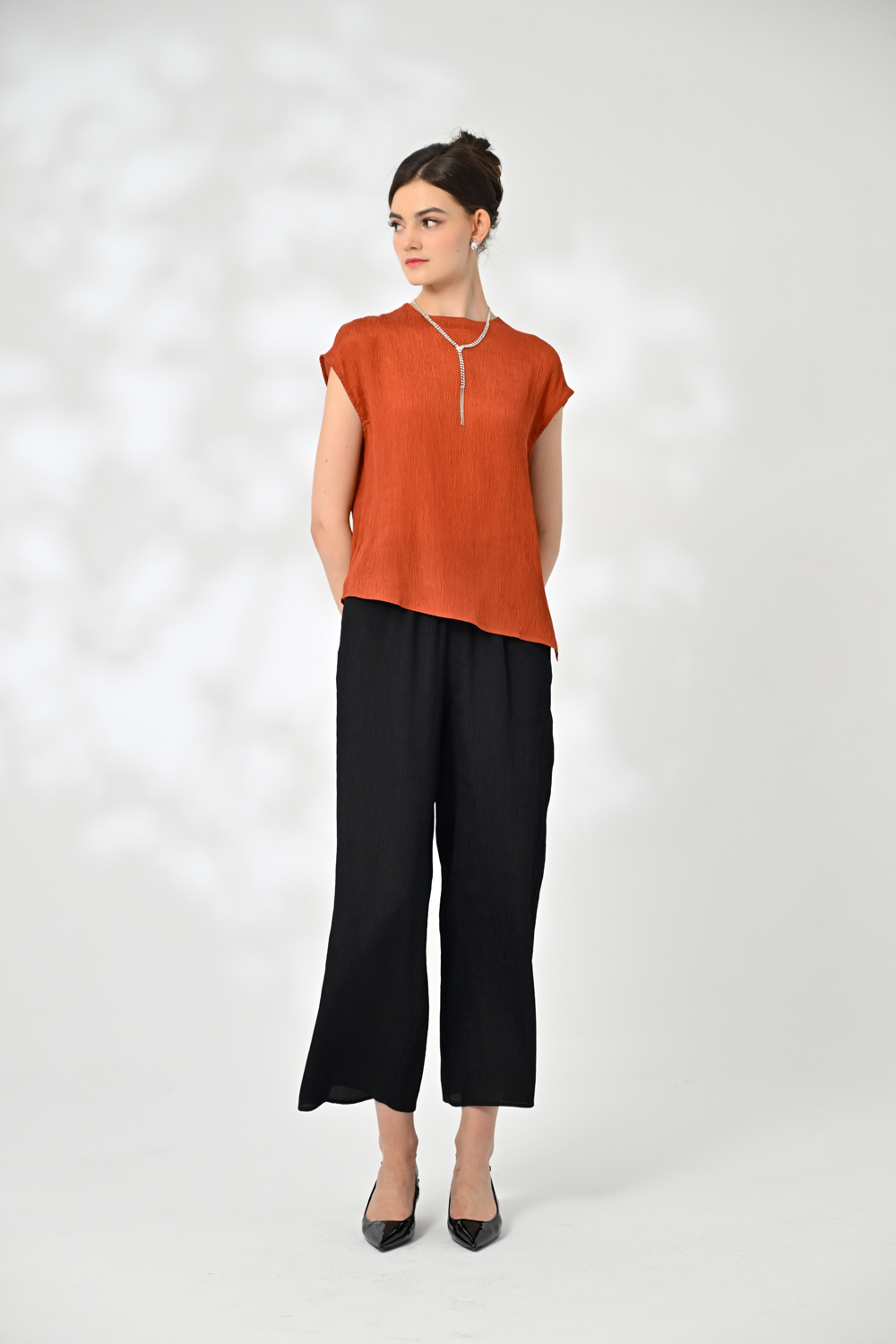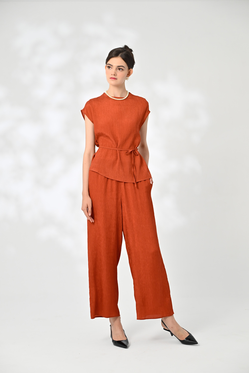 御絹坊質感尊榮褶縐蠶絲綁帶上衣-6761(紅柿色)