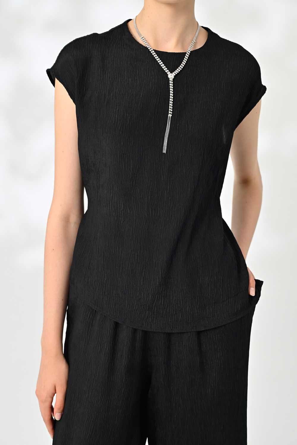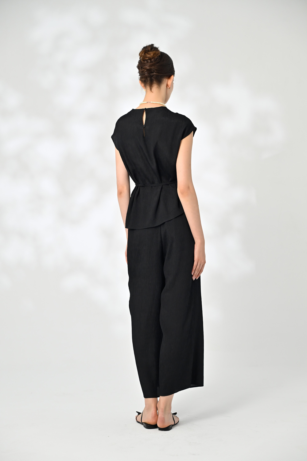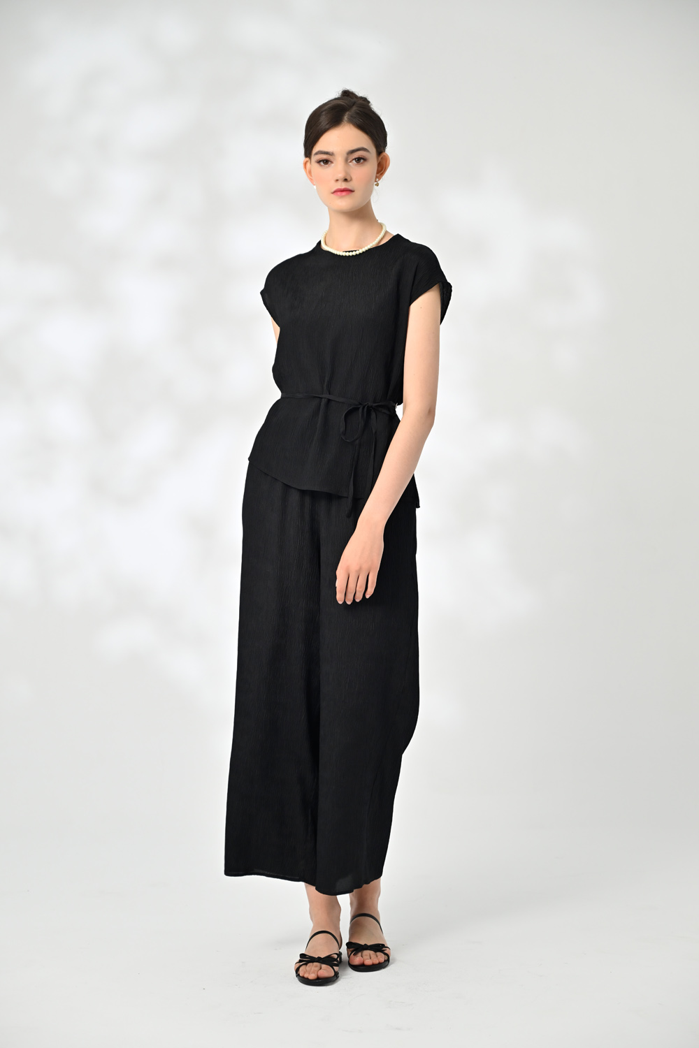 御絹坊質感尊榮褶縐蠶絲綁帶上衣-6761(夜幕黑)