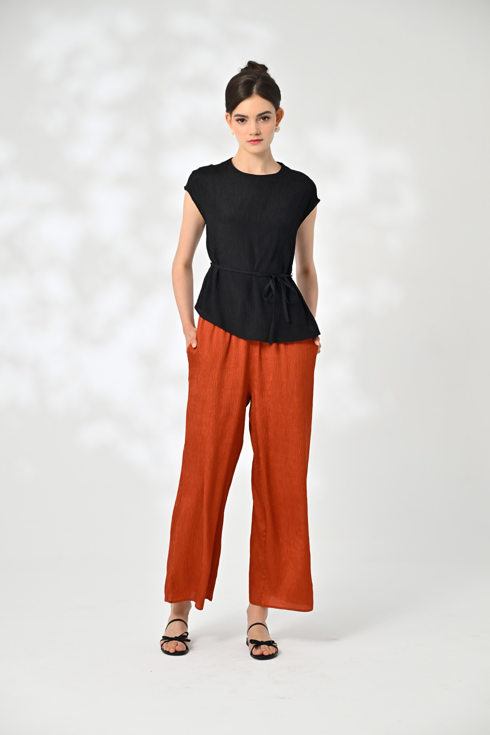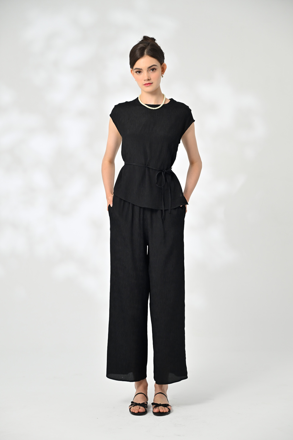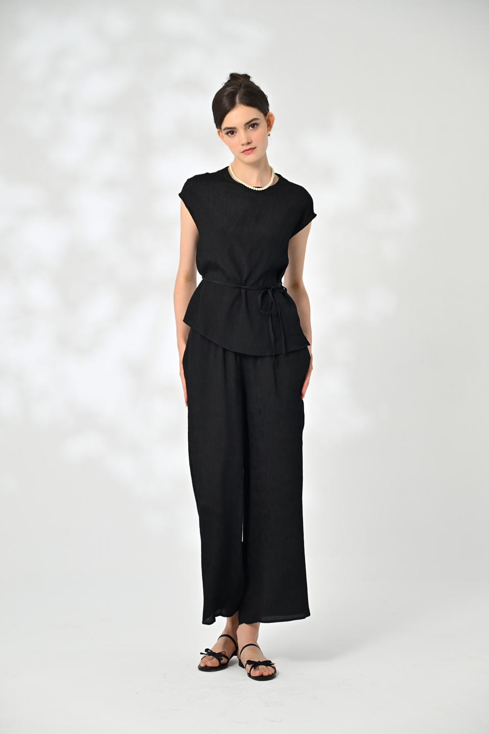 御絹坊質感尊榮褶縐蠶絲綁帶上衣-6761(夜幕黑)